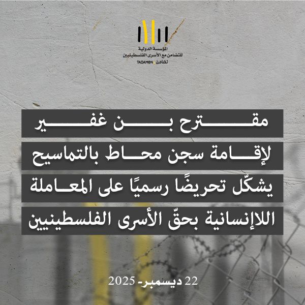 - مقترح منسوب لإيتمار بن غفير يكشف نزعة تحريضية لتكريس أنماط احتجاز لاإنسانية بحقّ الأسرى الفلسطينيين